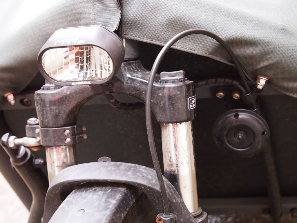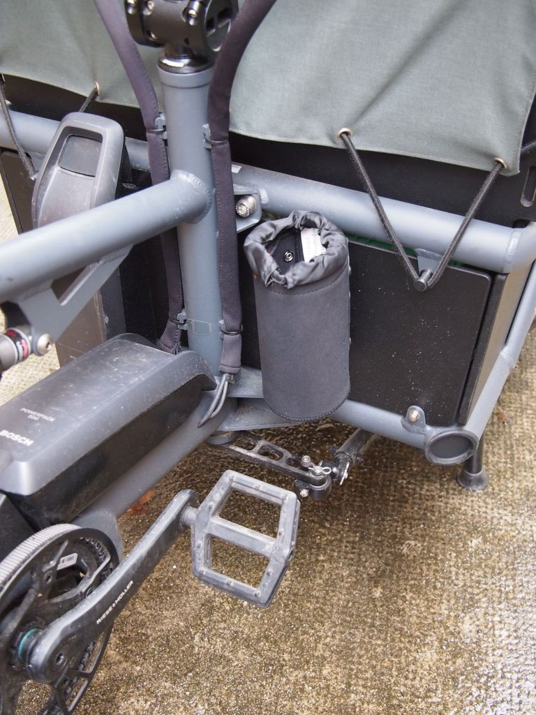 dem netten und praktischen Flaschenhalter, der Zugänglickeit der beiden Akkus – ich finde das Handling mit den Powerpacks wesentlich angenehmer als mit den Intubes – , der gut verarbeiteten Persenning