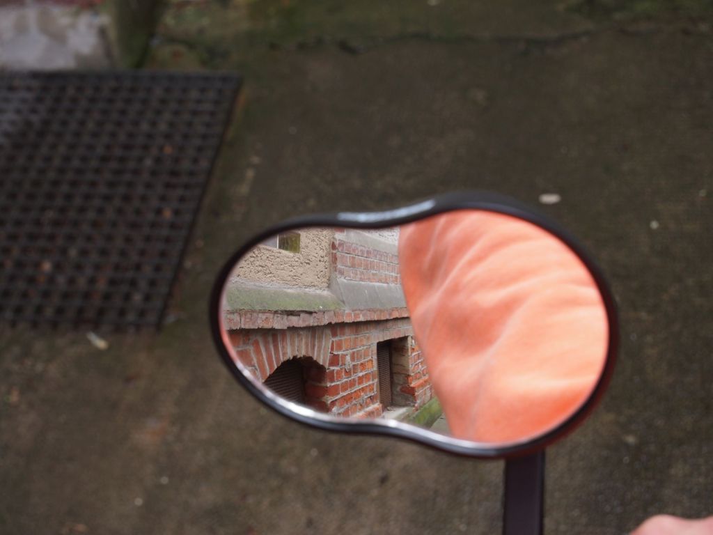 Der Spiegel ist zwar optisch schön anzusehen, zeigt aber überwiegend den korrekten Sitz der Oberbekleidung am Ellenbogen.