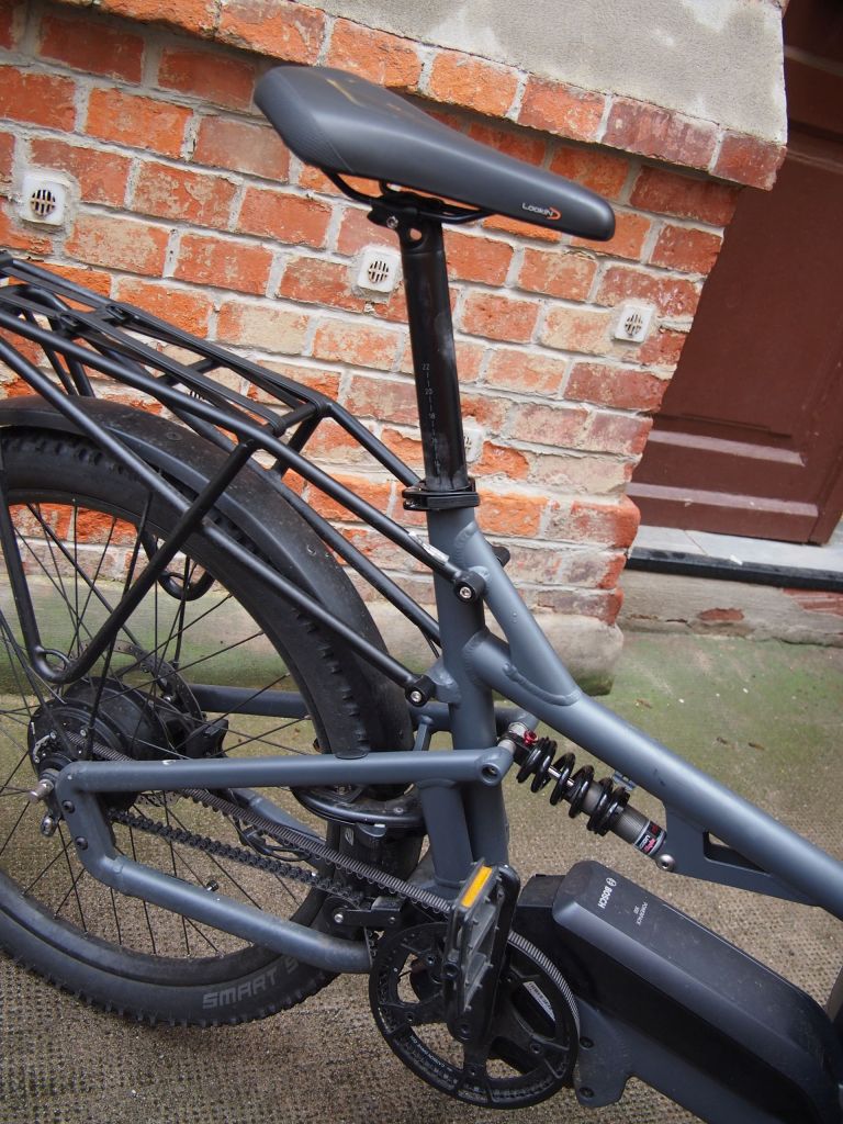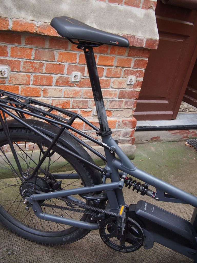 Im Gegensatz zu den Lastenbikes holländischer Prägung ist die Sitzhaltung eher tourentauglich sportlich. Lenkerhöhe und -neigung und damit der Abstand zum Sattel ( neudeutsch Reach ) sind mit Schnellverschlüssen einstellbar. Dadurch ist das Bike auch WG-tauglich. Wir bekamen es hin, wie auf einem Delite zu sitzen. Also so wie gewohnt. Manche Lastenbikes ohne Federung flexen etwas, das Load 75 ist allerdings bocksteif. Vollfederung ist daher fast schon ein Muss. Die Strassen werden schliesslich nicht besser. Wir sind da zugegebenermassen verwöhnt, stehen doch nur Fullies in der Garage. Ihr könnt wegen der Vollfederung auch höhere Reifendrücke fahren, was bei Beladung leichter rollen lässt.