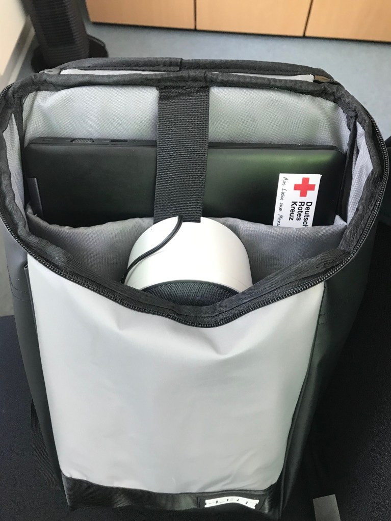 Echt baff war ich beim Packen: ich hätte nie gedacht, dass ein Standard 15,6 Zoll Laptop hinein geht. Diese Größe ist ja bei jüngeren Menschen eher selten, ich werde oft leicht spöttisch gefragt, warum ich so ein Riesending mit mir rumschleppe. Die Augen, Freunde, die Augen 🙂 .