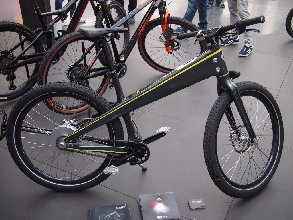 Wie das gallische Dorf umringt von ein Übermacht aus gewöhnlichen Bikes stand hier das Coleen aus Frankreich. Thibauld, einer der Gründer der Firma, meinte, dass in Frankreich tatsächlich ein Umdenken stattfinden würde. Das Speedpedelec solle zukünftig dazu beitragen, dass in den Städten Verkehr noch fliessen kann.