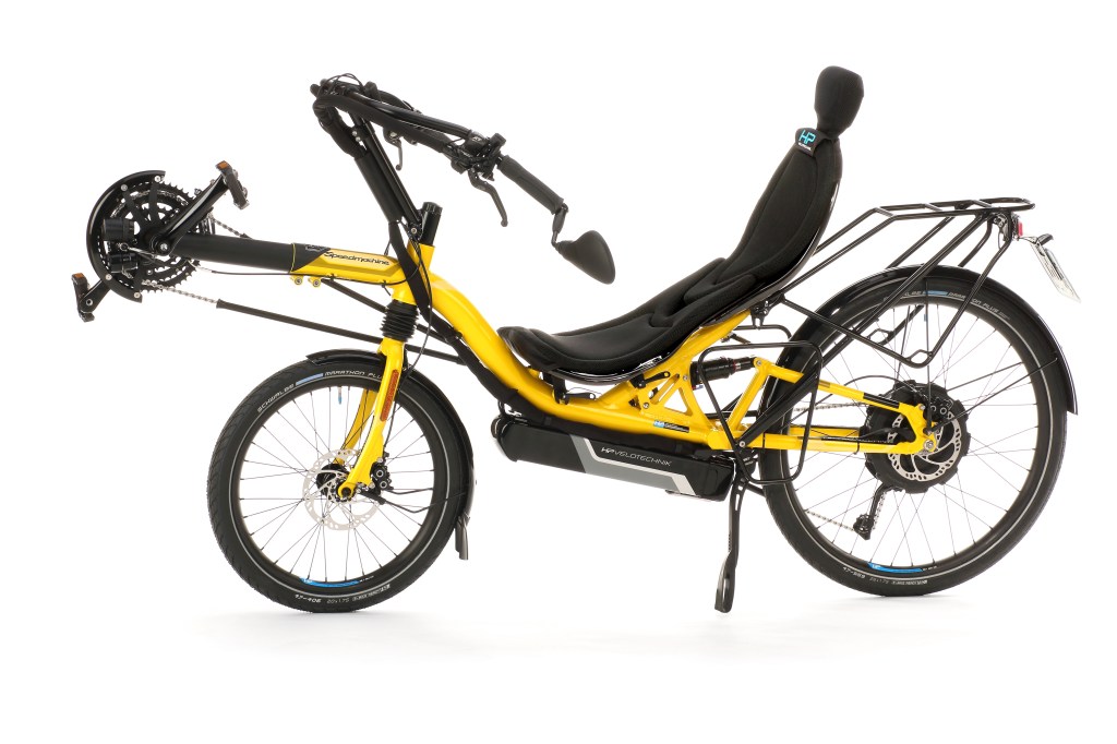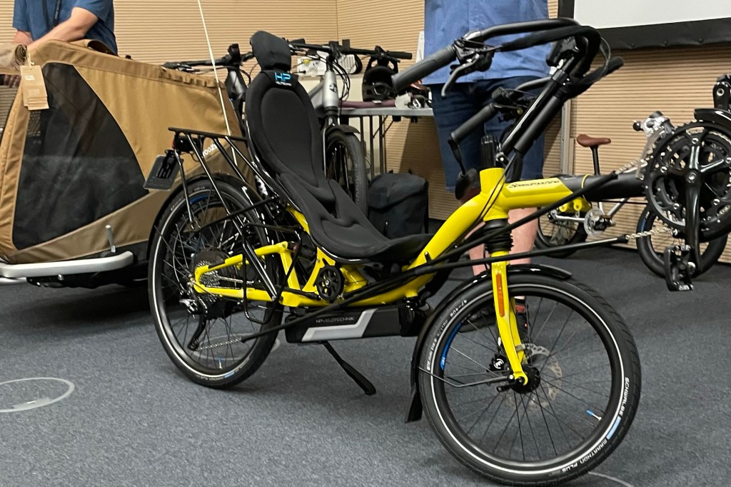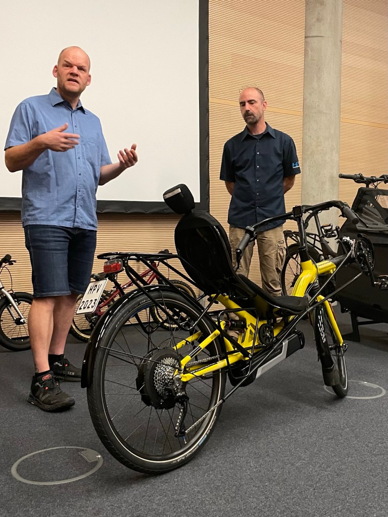 Und siehe da, kaum habe ich den Raum der Pressekonferenz betreten, gab es Abhilfe. Sogar als Weltpremiere. Da war sie also, die Lizenz zum Tief(f)liegen, vorgestellt von den Liegeradspezialisten HP Velotechnik aus Kriftel.